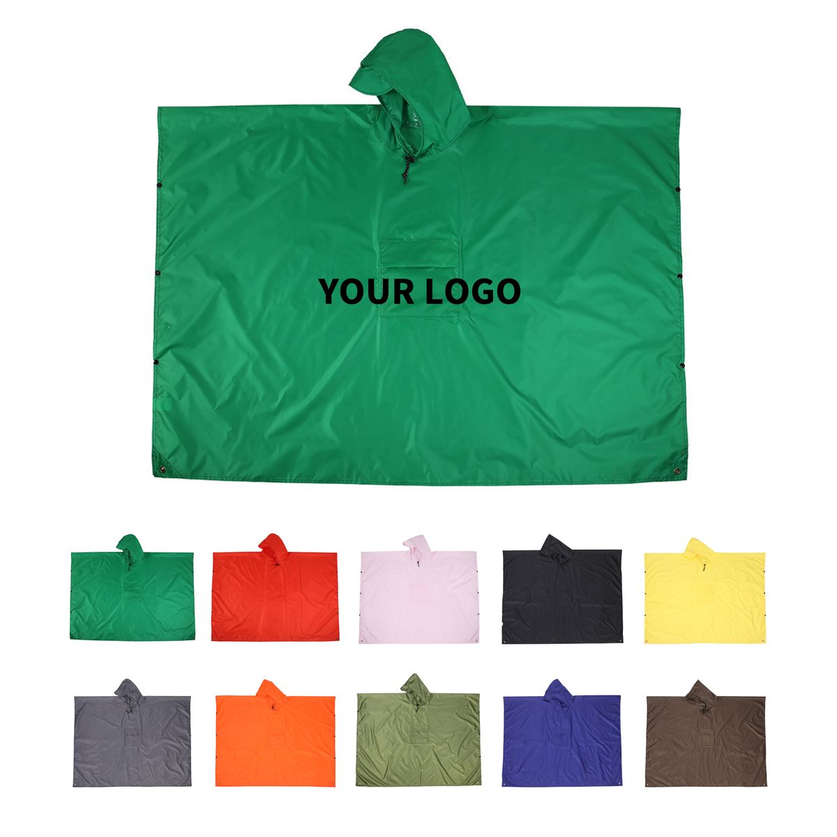 This versatile poncho converts for weather coverage as a wearable shell, a backpack cover, or a simple ground sheet. Lightweight polyester with sealed seams helps block rain, while an adjustable hood and snap closures improve fit. Reflective strips support low light visibility on commutes or trails. The back panel offers a heat transfer imprint zone for clear branding. Measuring about 82.7" by 55.1 inches, it folds into an integrated pouch for compact storage in daypacks or bike bags.