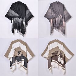 Made of high quality fabric, comfortable, warm shawl wrap for women. Suitable for any occasion. The length of this shawl right covers the fat at your waist and hip thigh makes you look tall and slim. No buttons or zippers to bother you to take on and off. The open front knitted poncho is perfect for casual daily wear. Large enough to wear in several different ways for both fashion and warmth.